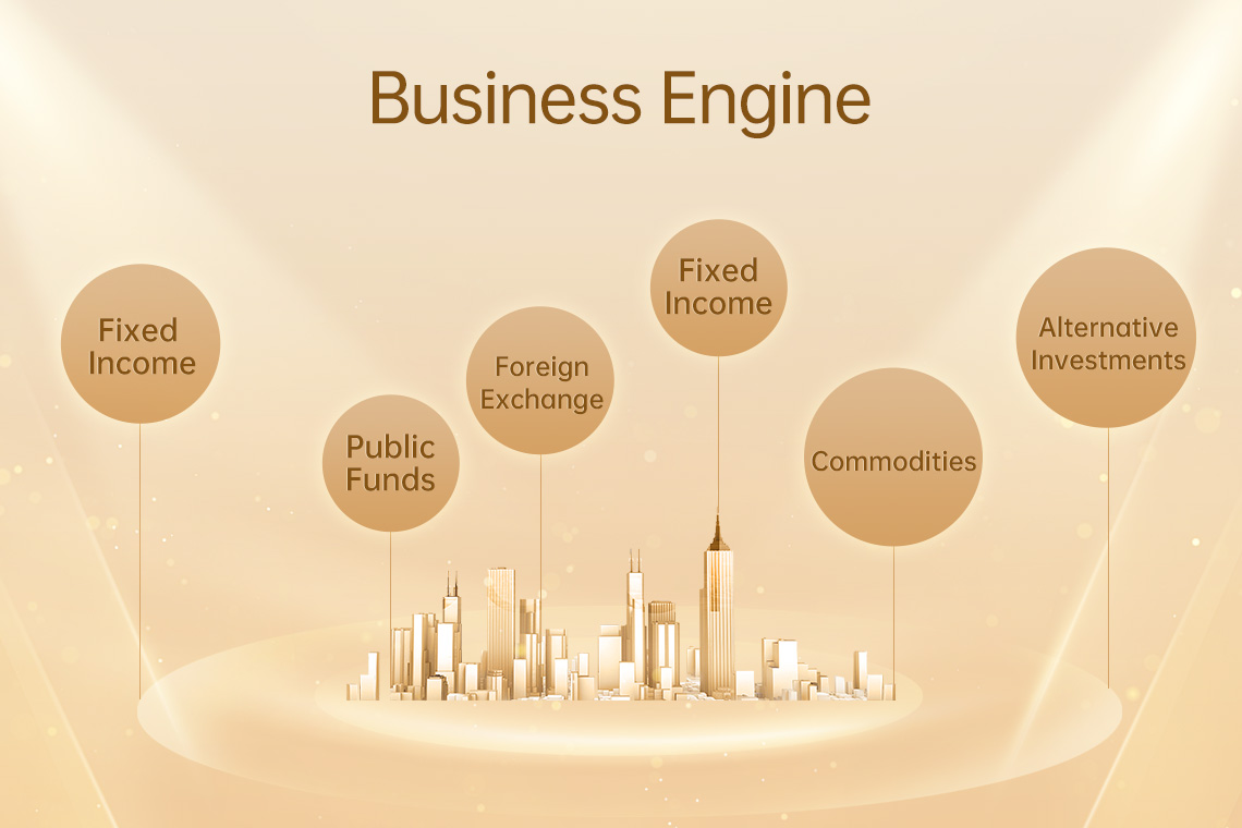 The GOLDIAN Group's subsidiary, Royal Fund Management Co., Ltd. (Central Number BJP312), was granted licenses for Type 1 (Securities Trading), Type 4 (Advising on Securities), and Type 9 (Asset Management) by the Hong Kong Securities and Futures Commission in September 2017. This marks the group's platform for overseas asset management. Based in Hong Kong, Royal Fund engages in both domestic and international asset management, as well as family office services. With a prudent, professional, and excellent business philosophy, we provide customers with a comprehensive range of financial services. Royal Fund has developed a business engine that primarily focuses on "private equity investment, public funds, fixed income, commodities, foreign exchange, and alternative investments."